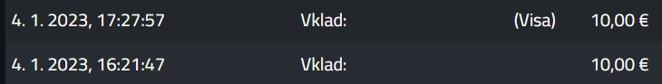 - V prípade, že ste vkladali kartou, uvidíte v poli NÁZOV číslo karty, spoločne s parametrom "Visa".