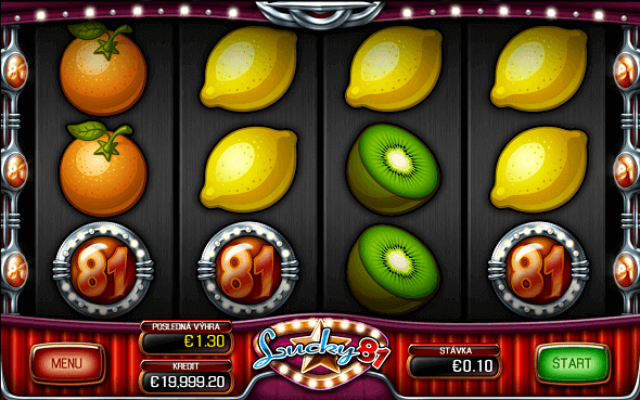 Lucky 81 je 4-válcový ovocný automat od spoločnosti Apollo Games, ktorý dlhodobo patrí u hráčov medzi veľmi obľúbené a vyhľadávané hry. Vaším cieľom je vytočiť 4 zhodné symboly v 7 fixných líniách (s Wild Symbolom až 81 fixných línií). Minimálna stávka do hry je 0,10 € a maximálna 500 €. Maximálna výhra v základnej hre je 81 000 € (162-násobok najvyššej stávky).